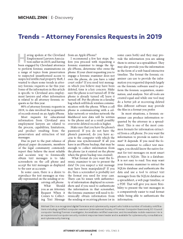 been engaged by Cleveland attorneys to perform forensic examinations on a range of topics from preservation to suspected unauthorized access to suspected intellectual property the , I wanted to share some trends in attor- ney forensic requests so far this year. Some of the information in this article is speci c to Cleveland area employ- ment lawyers and other information is related to all attorney forensic re- quests so far this year.